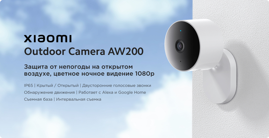 Xiaomi Outdoor Camera AW200 защищена от пыли и воды по стандарту IP65 и оснащена профессиональным водонепроницаемым динамиком, микрофоном и розеткой. Её можно поместить где угодно - снаружи или внутри, не опасаясь за непогоду. Компактный размер позволяет использовать камеру в помещении.